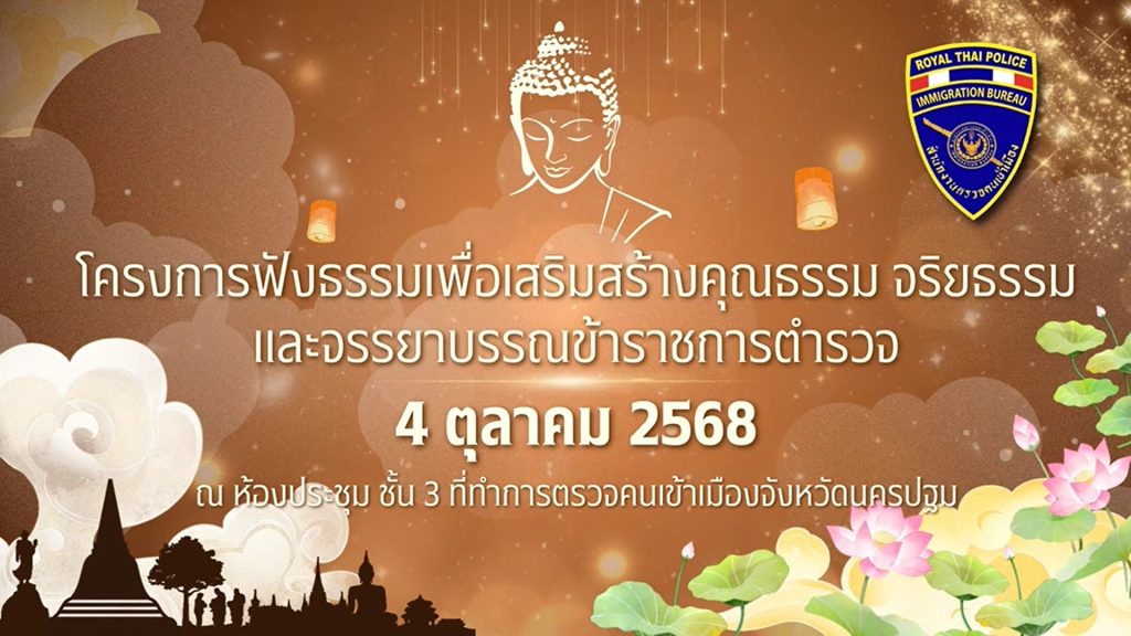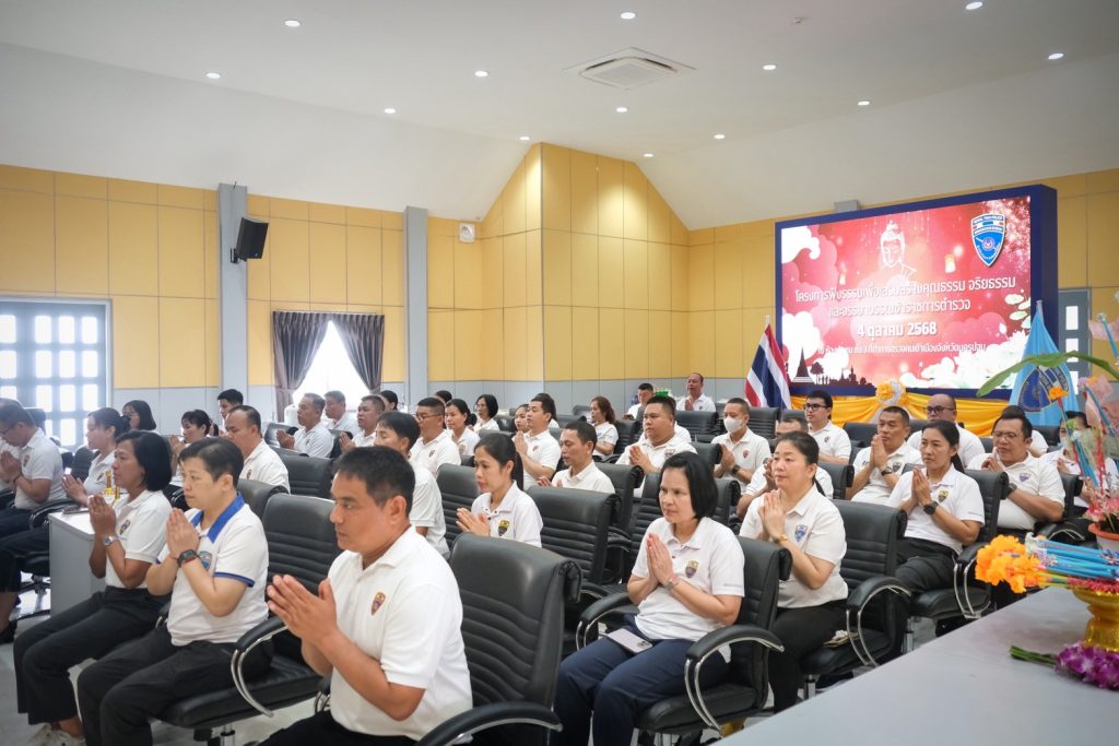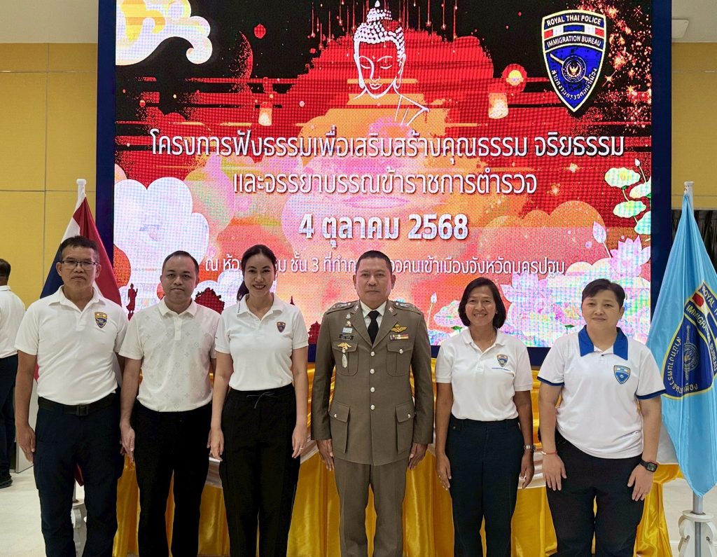 วันเสาร์ที่ 4 ต.ค.68 เวลา 12.00 น. พ.ต.อ.เบญจพล รอดสวาสดิ์ ผกก.ตม.จว.นครปฐม นำข้าราชการตำรวจในสังกัด ตม.จว.นครปฐม จัดโครงการฟังธรรมเพื่อเสริมสร้างคุณธรรม จริยธรรม และ จรรยาบรรณข้าราชการตำรวจ ณ ห้องประชุม ตม.จว.นครปฐม เพื่อปลูกฝังให้ข้าราชการตำรวจมีคุณธรรม จริยธรรม เข้าใจในหลักธรรมของพระพุทธศาสนา และสามารถนำไปเป็นแนวทางในการดำเนินชีวิตได้