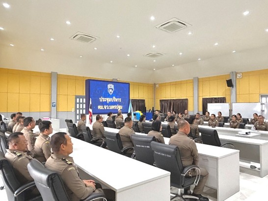 วันที่ 19 กุมภาพันธ์ 2569 เวลา 17.00 น. พ.ต.อ.จิรพงศ์ รุจิรดำรงค์ชัย ผกก.ตม.จว.นครปฐม พร้อมด้วย รอง ผกก.ตม.จว.นครปฐม สว.ตม.จว.นครปฐม และข้าราชการตำรวจในสังกัดเข้าร่วมประชุมประชุมบริหาร ตม.จว.นครปฐม ประจำเดือน ก.พ.69 ณ ห้องประชุมชั้น 3 ที่ทำการ ตม.จว.นครปฐม เพื่อชี้แจงข้อราชการและมอบนโยบายการปฏิบัติหน้าที่ และให้ข้าราชการตำรวจ ระดับ รอง สว. ถึง ผบ.หมู่ รายงานตัวมารับตำแหน่งใหม่