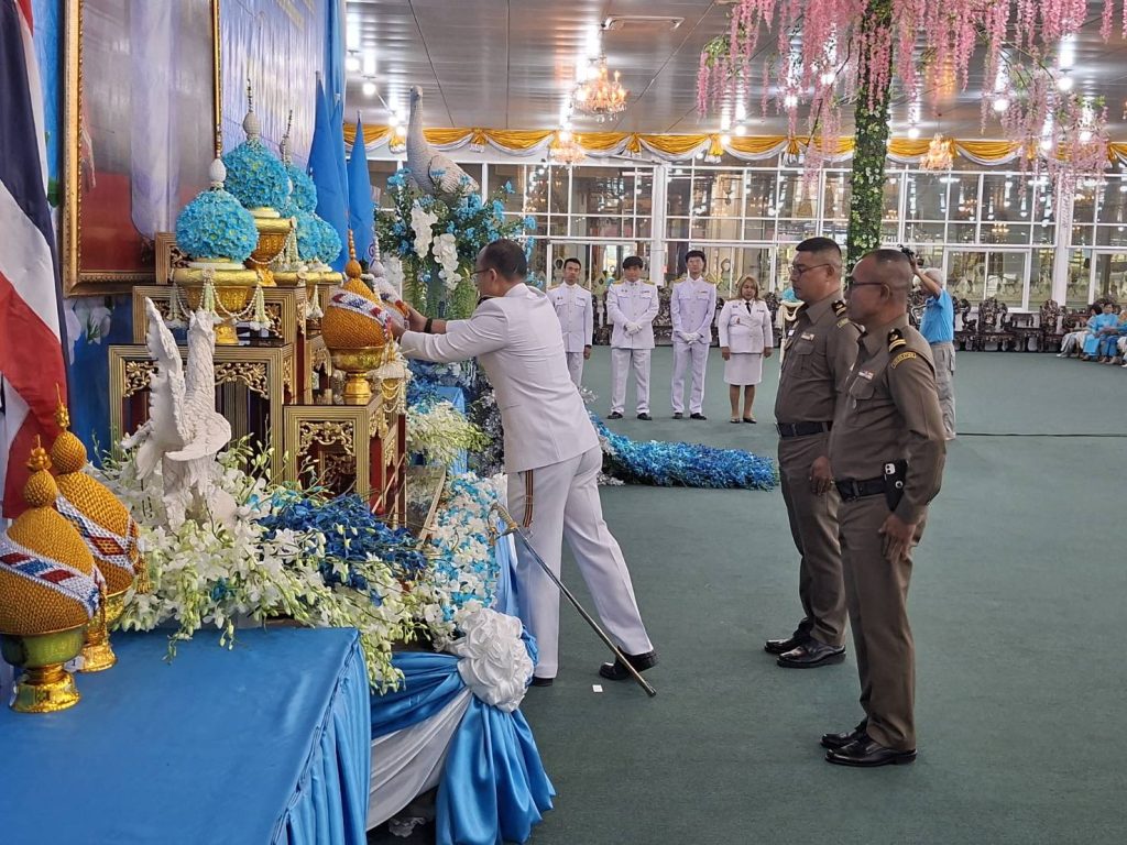 วันที่ 12 ส.ค.68 เวลา 17.00 น. พ.ต.อ.เบญจพล รอดสวาสดิ์ ผกก.ตม.จว.นครปฐม มอบหมายให้ ร.ต.อ.อาทิตย์ ศิลาเพชร รอง สว.ตม.จว.นครปฐม นำข้าราชการตำรวจในสังกัดเข้าร่วมพิธีถวายเครื่องราชสักการะและวางพานพุ่ม และพิธีจุดเทียนถวายพระพรชัยมงคล เนื่องในโอกาสวันเฉลิมพระชนมพรรษา สมเด็จพระนางเจ้าสิริกิติ์ พระบรมราชินีนาถ พระบรมราชชนนีพันปีหลวง 12 สิงหาคม 2568 ณ วัดไร่ขิง พระอารามหลวง ต.ไร่ขิง อ.สามพราน จว.นครปฐม