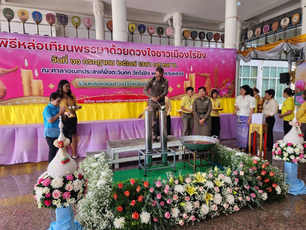วันที่ 11 ก.ค.67 เวลา 09.00 น. ภายใต้การอำนวยการของ พ.ต.อ.เบญจพล รอดสวาสดิ์ ผกก.ตม.จว.นครปฐม สั่งการให้ข้าราชการตำรวจในสังกัด เข้าร่วมพิธีหล่อเทียนพรรษา ประจำปี 2567 ณ วัดไร่ขิง พระอารามหลวง ต.ไร่ขิง อ.สามพราน จว.นครปฐม