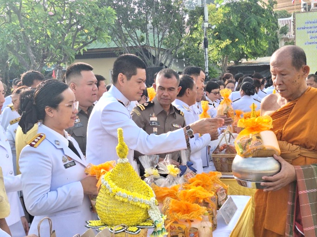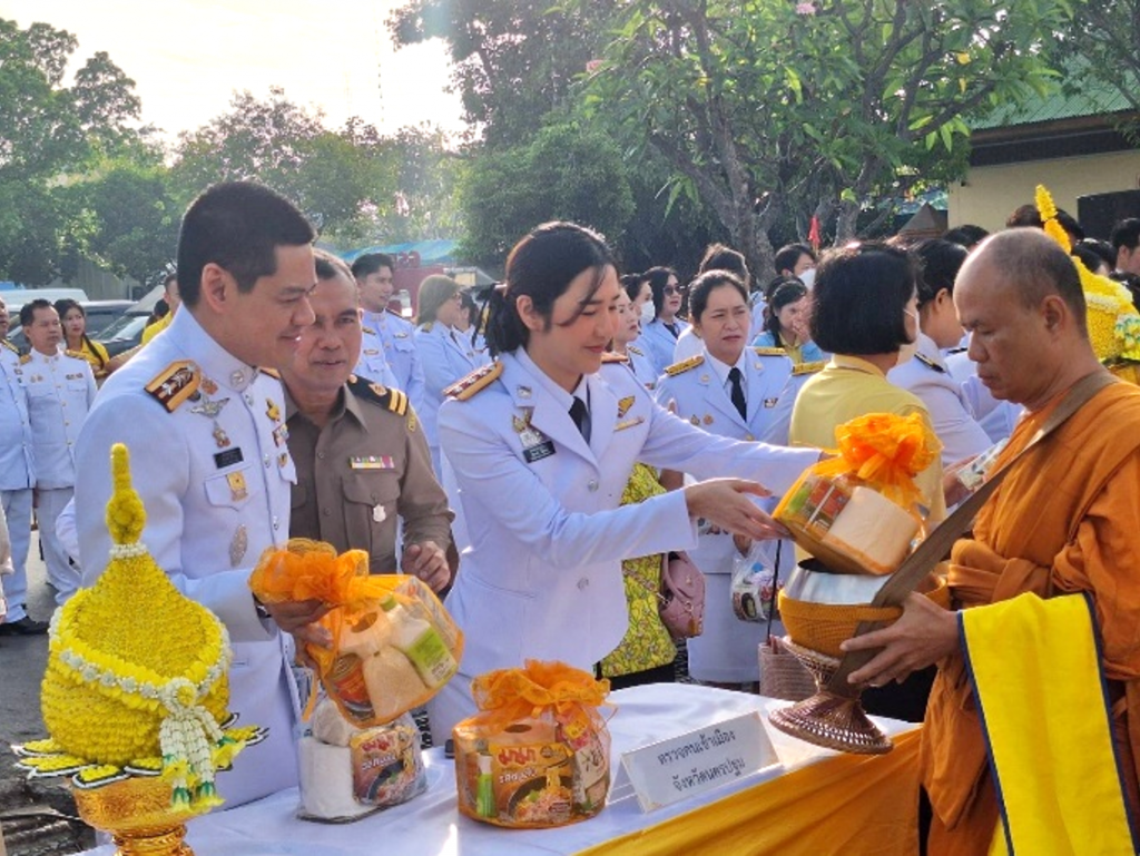 วันที่ 5 ธ.ค.67 เวลา 07.00 น. พ.ต.อ.เบญจพล รอดสวาสดิ์ ผกก.ตม.จว.นครปฐมมอบหมายให้ พ.ต.ท.สุกฤษณ์ มีบำรุง รอง ผกก.ตม.จว.นครปฐม นำข้าราชการตำรวจในสังกัดเข้าร่วมพิธีเจริญพระพุทธมนต์และทำบุญตักบาตรถวายพระราชกุศล เนื่องในวันคล้ายวันพระบรมราชสมภพ พระบาทสมเด็จพระบรมชนกาธิเบศร มหาภูมิพลอดุลยเดชมหาราช บรมนาถบพิตร วันชาติ และวันพ่อแห่งชาติ 5 ธันวาคม 2567 ณ บริเวณลานหน้าพระร่วงโรจนฤทธิ์ องค์พระปฐมเจดีย์ อ.เมืองนครปฐม จว.นครปฐม