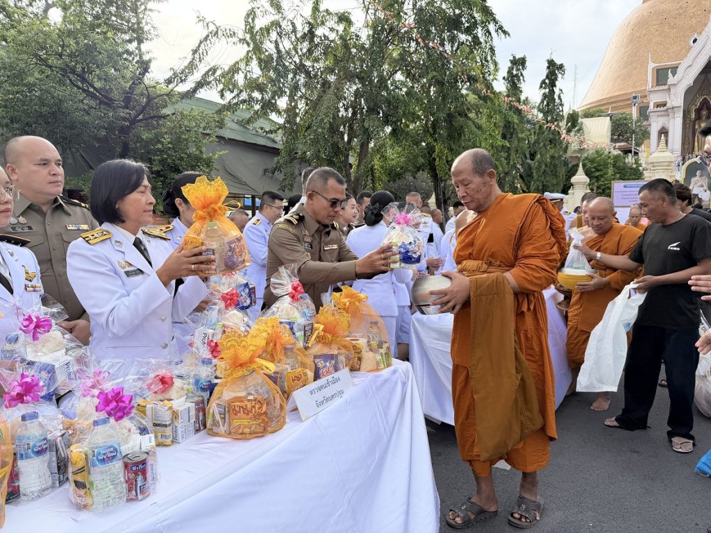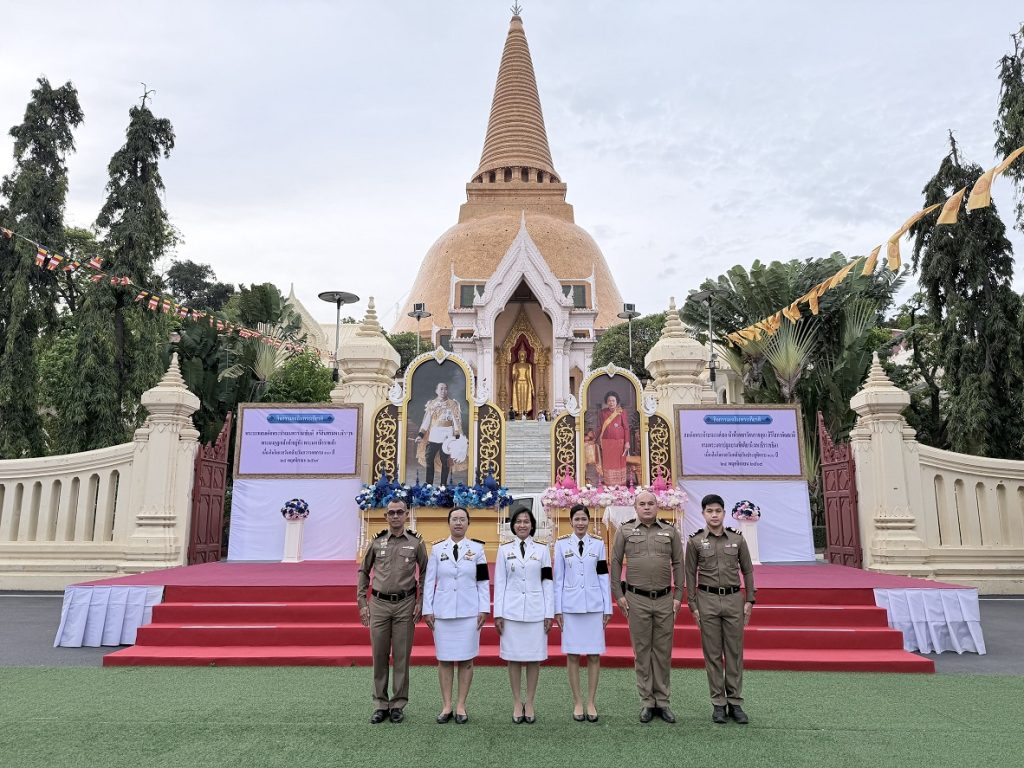 วันที่ 25 พ.ย.68 เวลา 07.00 น. ภายใต้การอำนวยการของ พ.ต.อ.เบญจพล รอดสวาสดิ์ ผกก.ตม.จว.นครปฐม มอบหมายให้ พ.ต.ท.หญิง ปรารถนา นิจรี รอง ผกก.ตม.จว.นครปฐม นำข้าราชการตำรวจในสังกัดเข้าร่วมพิธีเจริญพระพุทธมนต์และทำบุญตักบาตรถวายพระราชกุศล, พิธีวางพวงมาลาถวายราชสักการะพระบาทสมเด็จพระมงกุฎเกล้าเจ้าอยู่หัว เนื่องในโอกาสวันคล้ายวันสวรรคตครบ 100 ปี 25 พฤศจิกายน 2568 และวางพุ่มดอกไม้ถวายสักการะสมเด็จพระเจ้าภคินีเธอ เจ้าฟ้าเพชรรัตนราชสุดา สิริโสภาพัณณวดี เนื่องในโอกาสวันคล้ายวันประสูติครบ 100 ปี 24 พฤศจิกายน 2568 ณ ศาลากองอำนวยการ และลานหน้าพระร่วงโรจนฤทธิ์ องค์พระปฐมเจดีย์ จว.นครปฐม