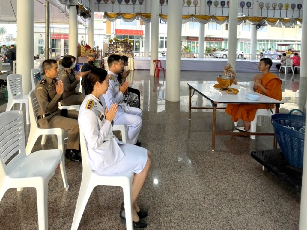 วันที่ 5 ธ.ค.67 เวลา 07.00 น. พ.ต.อ.เบญจพล รอดสวาสดิ์ ผกก.ตม.จว.นครปฐม มอบหมายให้ พ.ต.ท.จิรโชติวัจน์ คล้ายคลึง สว.ตม.จว.นครปฐม นำข้าราชการตำรวจในสังกัดเข้าร่วมพิธีเจริญพระพุทธมนต์ และทำบุญตักบาตรถวายพระราชกุศล เนื่องในวันคล้ายวันพระบรมราชสมภพ พระบาทสมเด็จพระบรมชนกาธิเบศร มหาภูมิพลอดุลยเดชมหาราช บรมนาถบพิตร วันชาติ และวันพ่อแห่งชาติ 5 ธันวาคม 2567 ณ มณฑลพิธีวัดไร่ขิง พระอารามหลวง อ.สามพราน จว.นครปฐม