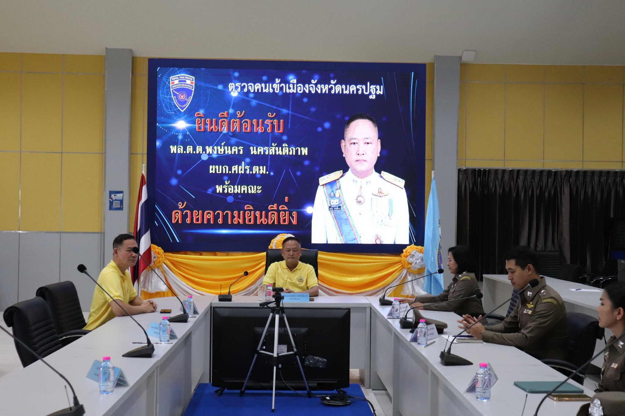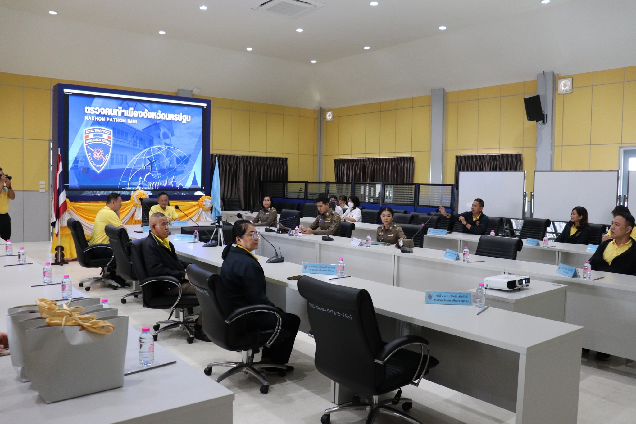 วันที่ 14 ส.ค.67  เวลา 12.30 น. ภายใต้การอำนวยการของ พ.ต.อ.เบญจพล รอดสวาสดิ์ ผกก.ตม.จว.นครปฐม มอบหมายให้ พ.ต.ท.หญิง ปรารถนา นิจรี รอง ผกก.ตม.จว.นครปฐม, พ.ต.ท.จิรโชติวัจน์ คล้ายคลึง สว.ตม.จว.นครปฐม และ ว่าที่ พ.ต.ต.หญิง โฉมยงค์ บุญวิเศษ สว.ฯ ช่วยราชการ ตม.จว.นครปฐม ให้การต้อนรับ พล.ต.ต.พงษ์นคร นครสันติภาพ ผบก.ศฝร.ตม. พร้อมคณะเข้าศึกษาดูงาน เพื่อพัฒนาทักษะ การเรียนรู้แนวทางการปฏิบัติงานของ ตม.จว.นครปฐม ณ ห้องประชุม ชั้น 3 ที่ทำการ ตม.จว.นครปฐม