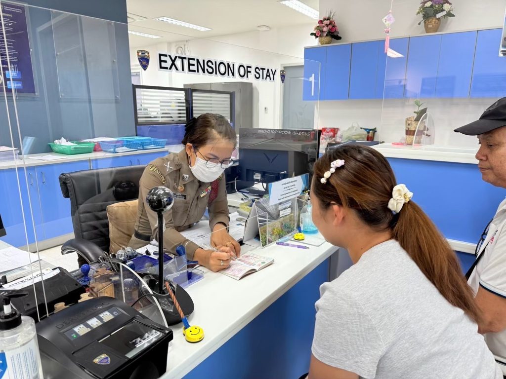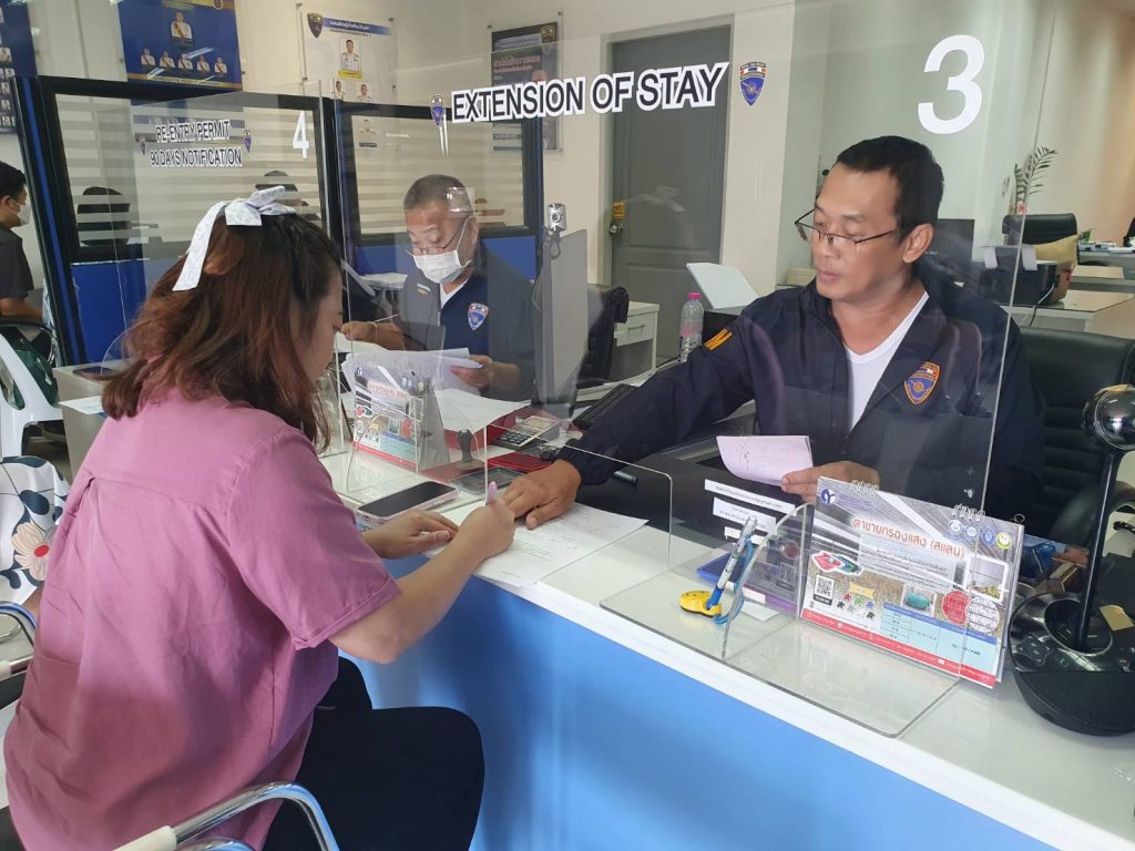 เจ้าหน้าที่งานบริการคนต่างด้าวรับคำร้องกรณีคนต่างด้าวยื่นคำร้องขออยู่ต่อในราชอาณาจักร