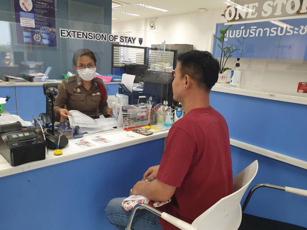 เจ้าหน้าที่งานบริการคนต่างด้าวรับคำร้องกรณีคนต่างด้าวยื่นคำร้องขออยู่ต่อในราชอาณาจักร