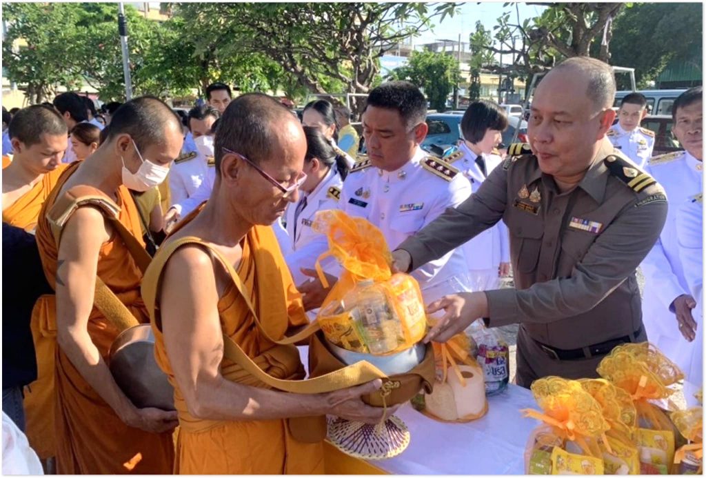 วันที่ 13 ต.ค.67 เวลา 07.00 น. พ.ต.อ.เบญจพล รอดสวาสดิ์ ผกก.ตม.จว.นครปฐม มอบหมายให้ พ.ต.ท.สุกฤษณ์ มีบำรุง รอง ผกก.ตม.จว.นครปฐม นำข้าราชการตำรวจในสังกัด เข้าร่วมพิธีทำบุญตักบาตรถวายพระราชกุศล เนื่องในวันนวมินทรมหาราช 13 ตุลาคม 2567 ณ บริเวณองค์พระปฐมเจดีย์ อ.เมืองนครปฐม จว.นครปฐม